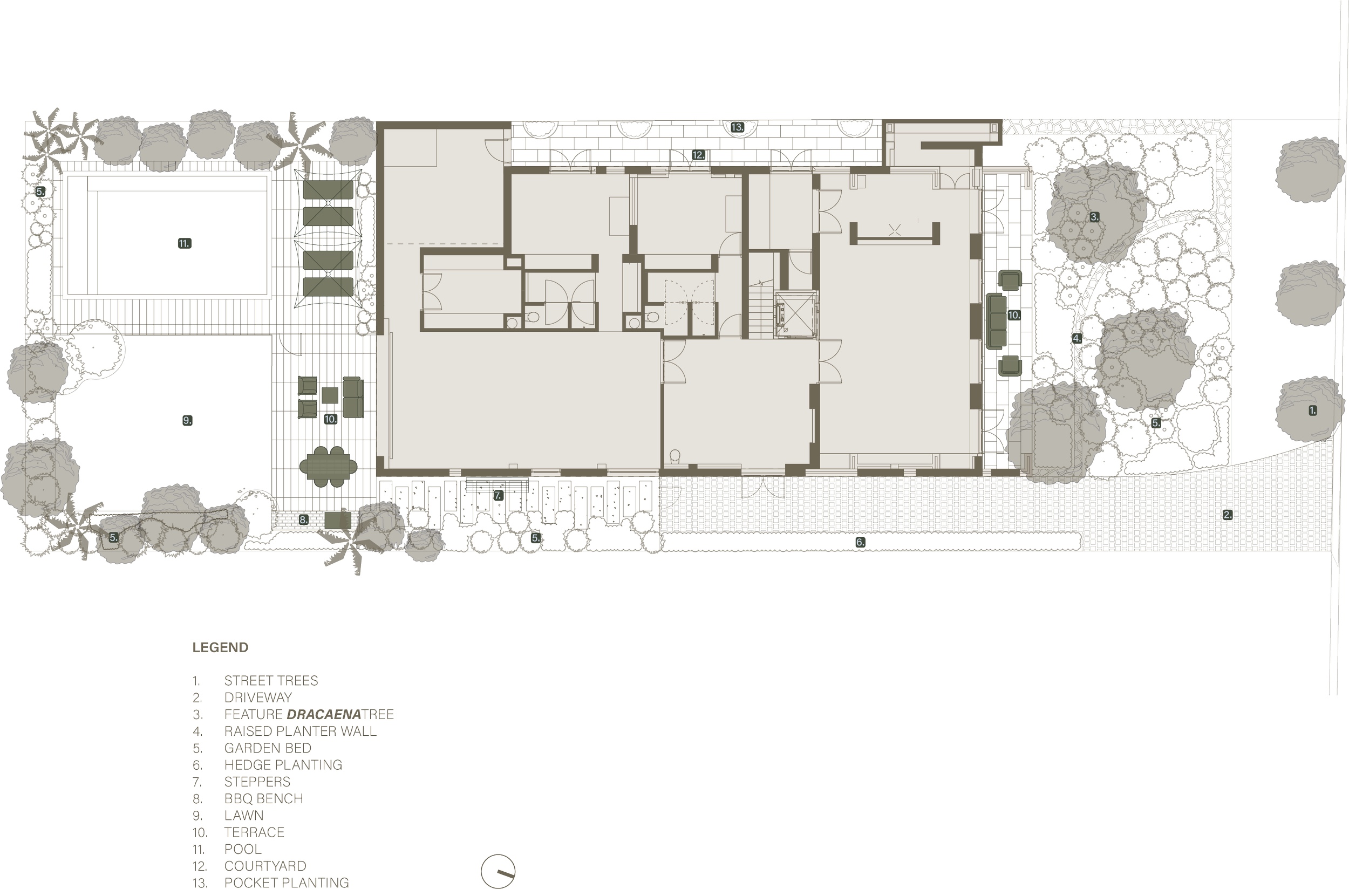 Every element has been thoughtfully chosen and positioned. Repetitive plant selections throughout the green spaces create a cohesive and calming journey around the home.